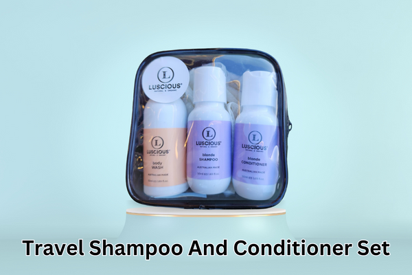 We understand the importance of having all your hair and body care products in one place, which is why our travel packs are designed for convenience. Each Luscious Travel Pack includes three 50 ml bottles: one Blonde Shampoo, one Blonde Conditioner, and one Body Wash, along with a Body Scrubber. This ensures you have everything you need to stay fresh, clean, and stylish on the go.